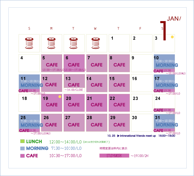 《カレンダー変更》1/13(火) 〜13:30/LO_14:00CLOSE