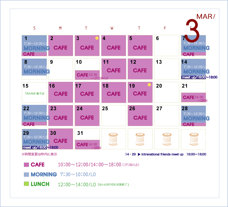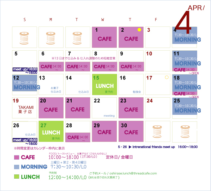 3/30(月)〜4/2(木)OPEN14:00〜18:00/(17:00LO)